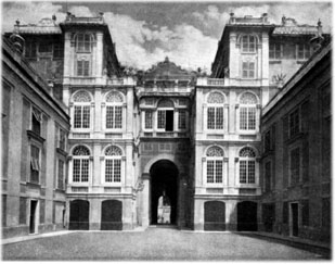 Nell'intera zona furono innalzati palazzi maestosi, quasi tutti su disegni di Bartolomeo Bianco. Proviamo ad elencarli: Palazzo Durazzo Pallavicini, Palazzo Raggio Gropallo, Palazzo Balbi Senarega, Palazzo dell'Università e Palazzo Reale (questo è il cortile in una foto dei primi del '900).