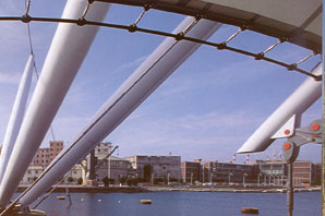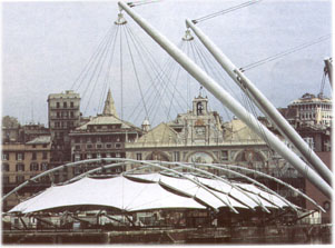 A sinistra sul prolungamento della calata è stata posta una speciale tenda a ricoprire il molo allargato, così da formare la Piazza delle Feste (nella foto in alto). Questo è diventato il palcoscenico preferito per le maggiori manifestazioni che si svolgono a Genova.