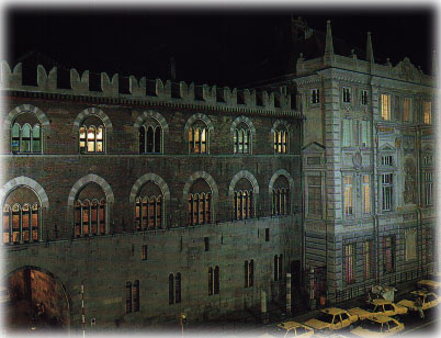 Le foto sotto ritraggono Palazzo San Giorgio di notte e la cinquecentesca Sale delle Compere.