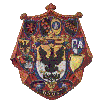 parlano gli annali”. L’ascesa della famiglia coincise con l’affermazione coloniale e marittima di Genova e ad esprimere la potenza raggiunta, è significativo lo stemma che i Doria resero comune a tutti i rami, nel XIV secolo, in onore di Arrigo VII: “Troncato d’oro e d’argento, all’aquila al volo spiegato di nero, imbeccata e membrata di rosso, coronata d’oro posto sul tutto. Cimiero: l’aquila uscente a volo spiegato. Loro motto: Altinora peto”.